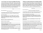 Half-page bilingual form explaining how to opt out when high schools release student information to recruiters. Updated following change in law (2015) that requires the signature of a parent or guardian to opt out a student who is younger than age 18.